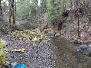 Located in the 12 Mile Mining District In Douglas County Oregon, this listing is for a lot of 4 mining claims totaling 80 Acres with over a mile of 12 Mile Creek running through them. There is a road the follows alongside the creek for the entire length of the claims. The creek ranges from 50′-700′ from the road. This means the claim offers fairly easy access for anyone of good health and great privacy. There are multiple campsites throughout the claim, and the lower elevation offers year around access via the well-maintained gravel road.