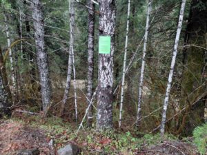 - You are free to sample the claim with non-motorized equipment. For directions via google maps to the downstream boundary of the claim CLICK HERE. When you reach the downstream boundary you will see a yellow claim sign. About 1/4 of a mile up the road you will see a green claim sign marking the Upstream Boundary.
